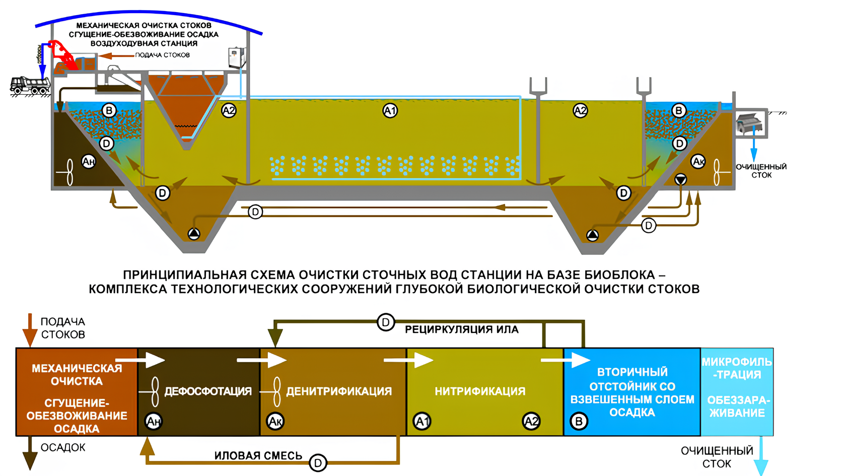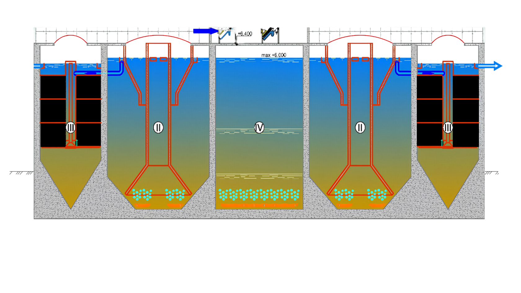 Применяемый модульный принцип построения очистных сооружений с объединением всех технологических процессов в одной емкости позволяет вести поэтапное строительство, увеличивать объемы соизмеримо с необходимой производительностью и выделяемыми инвестициями.