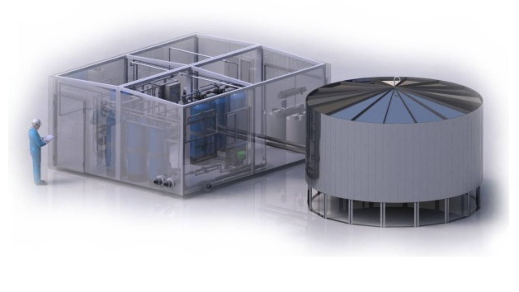 Modular water treatment systems are compact solutions for organizing water supply and water treatment for industrial enterprises. They can be presented both in containerized design and as fast-erected buildings.